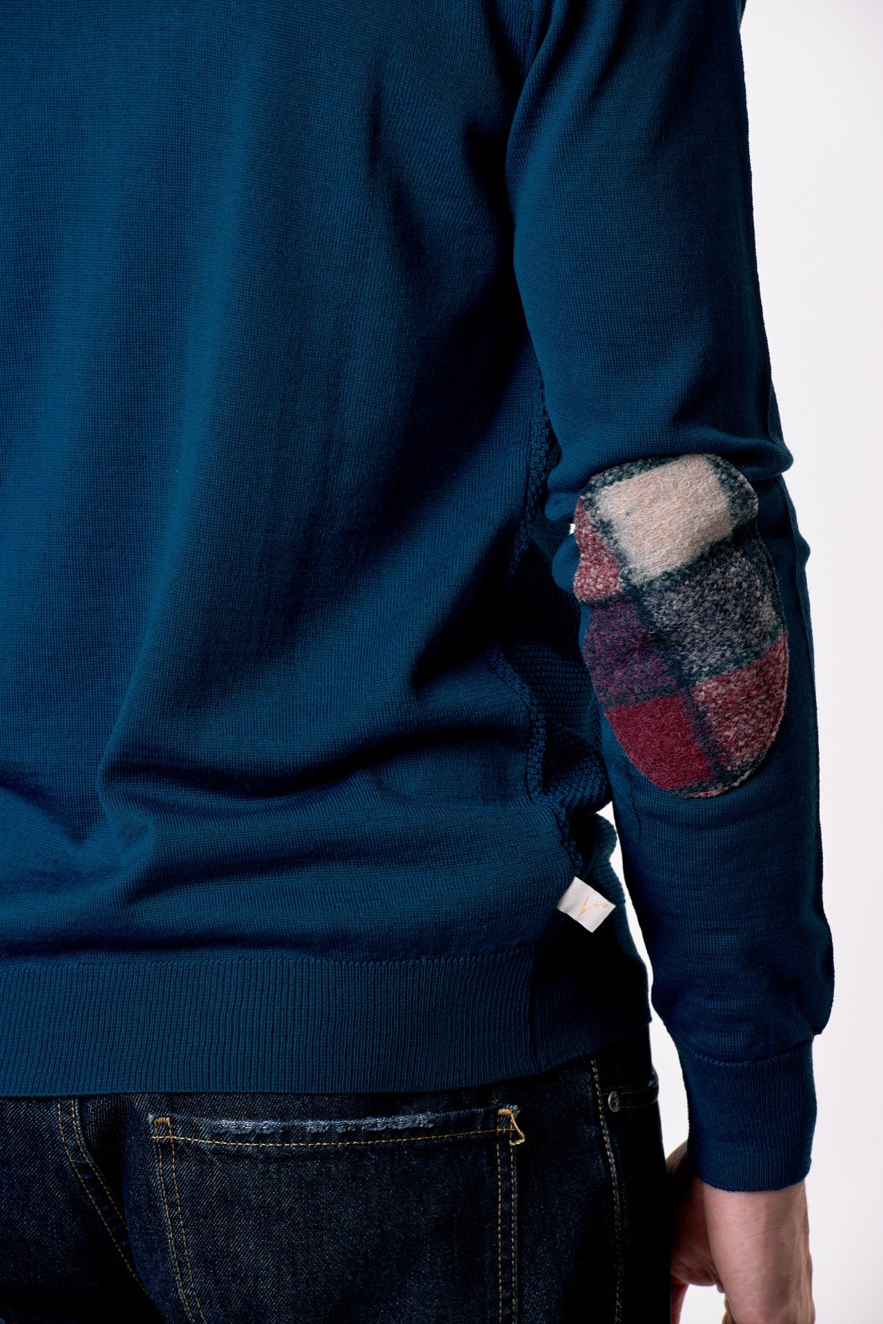 The rice stitch It embellishes the garment, giving it a beautiful three-dimensional and voluminous effect. The sartorial detail of the patches, made of V2 fabric and applied by hand to each sweater, makes it unique. Like the wearer.