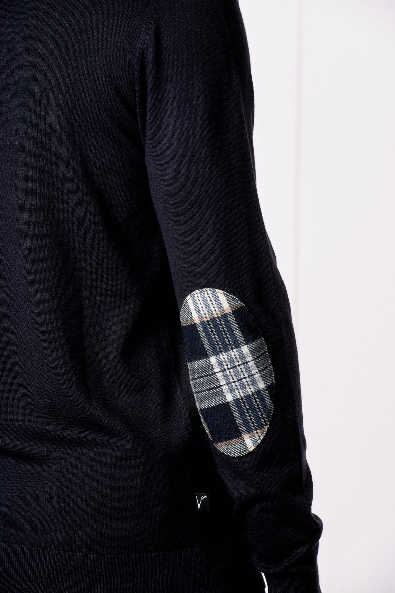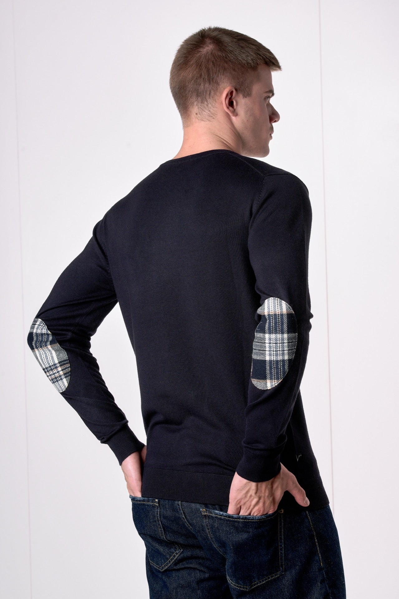 Blue Viscose Crew Neck Sweater with Fabric Patches V2