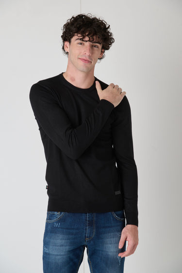 Black Viscose Crewneck Sweater