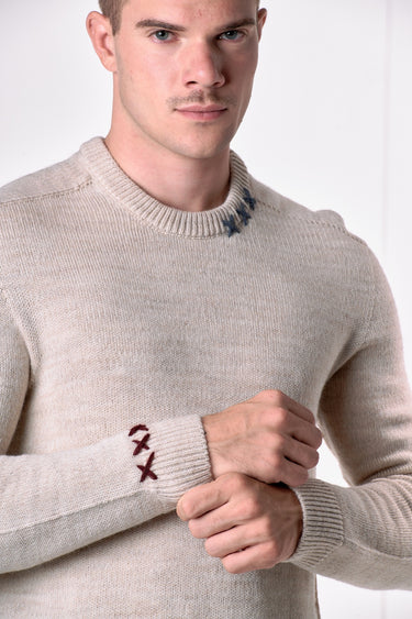 Alpaca Blend Crew Neck Sweater with X Embroidery