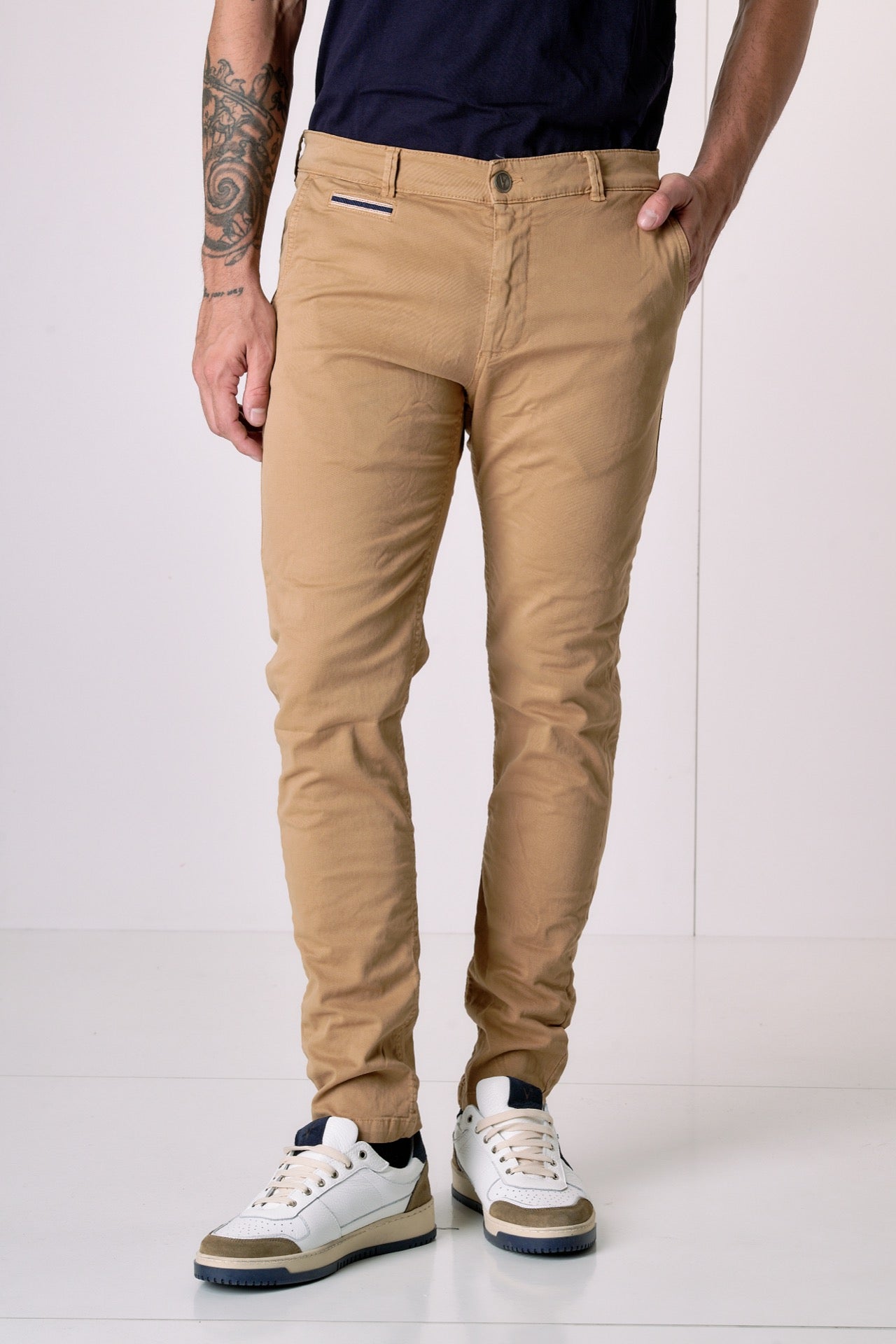 ROME - Biscuit stretch cotton chinos with V2 fabric label
