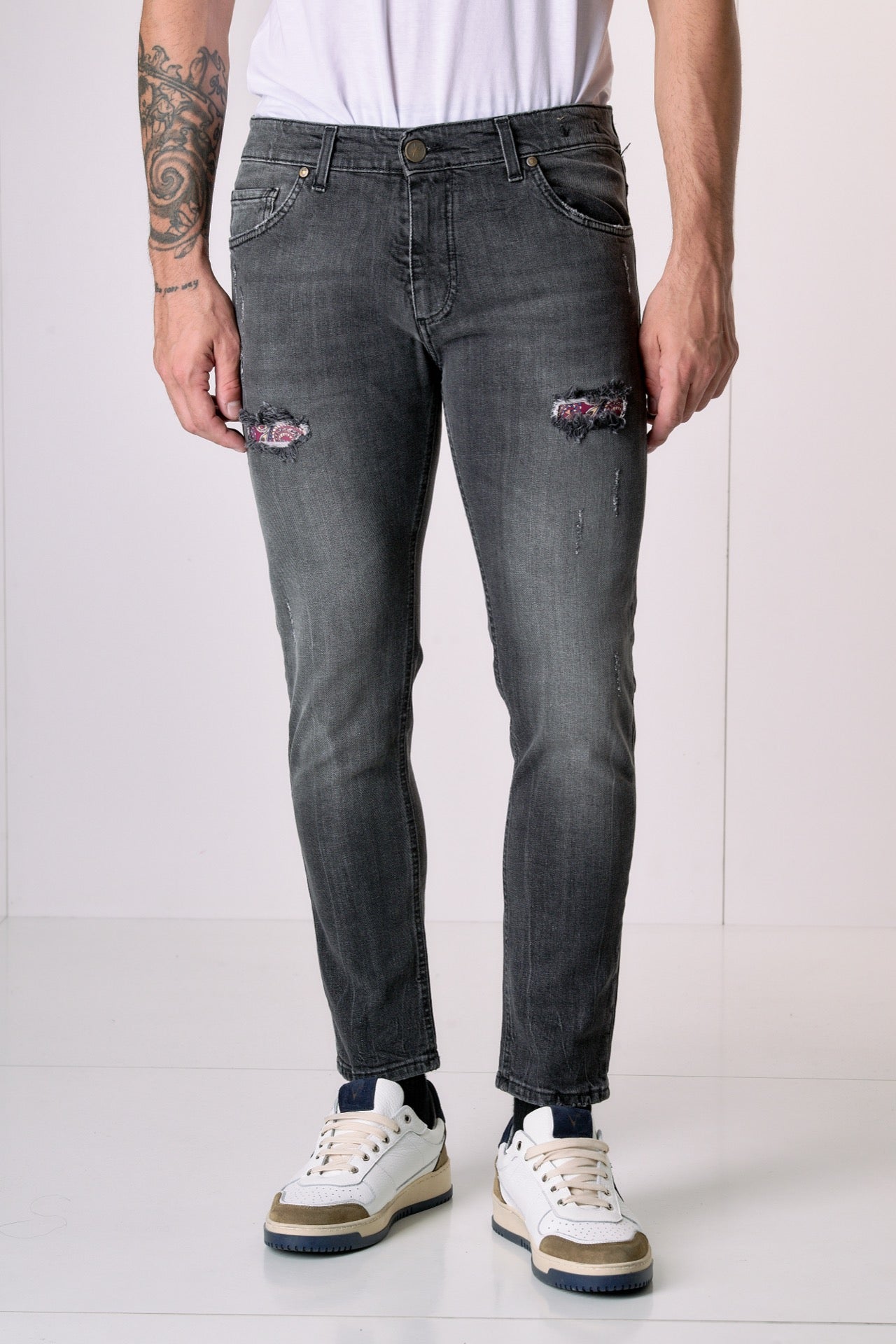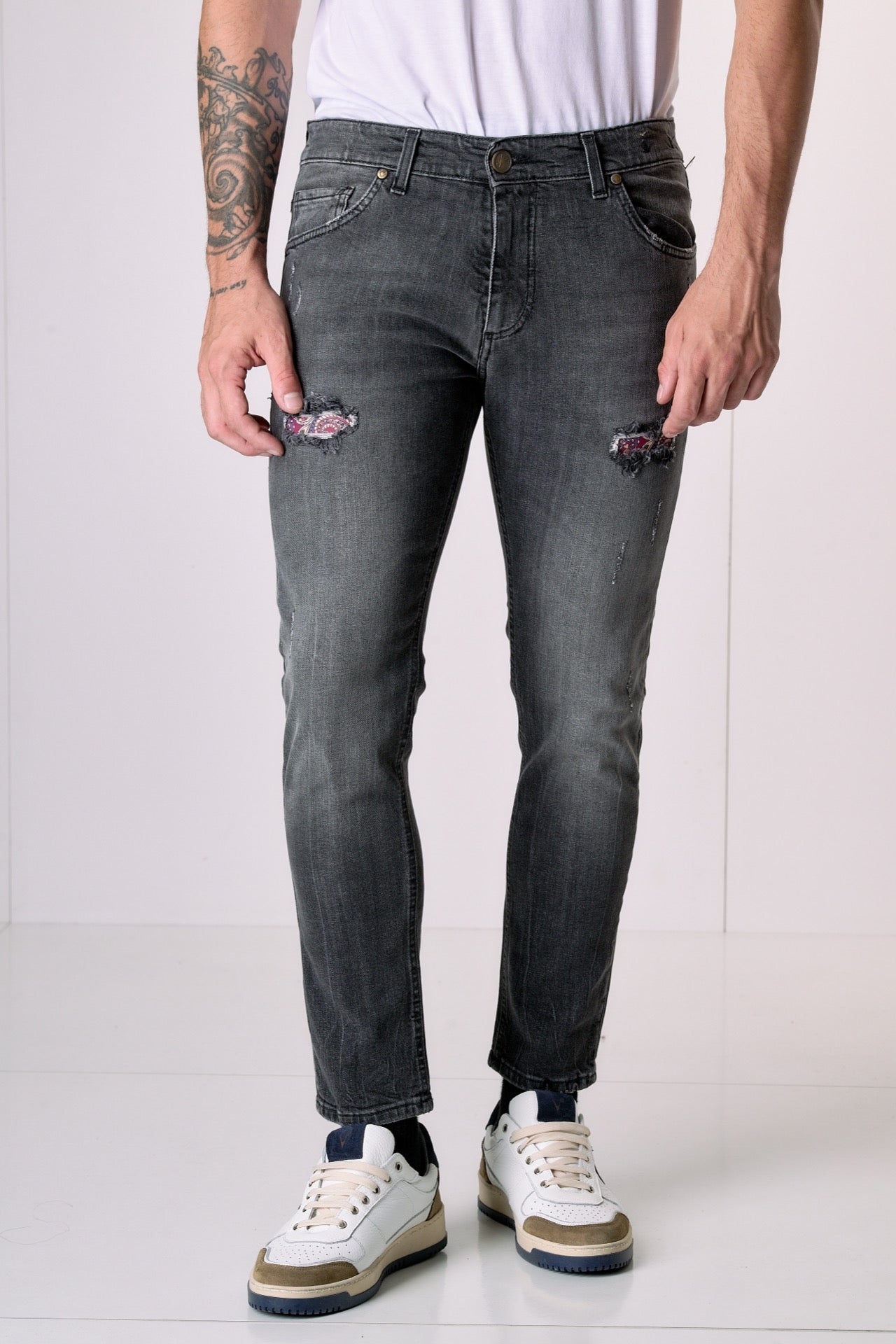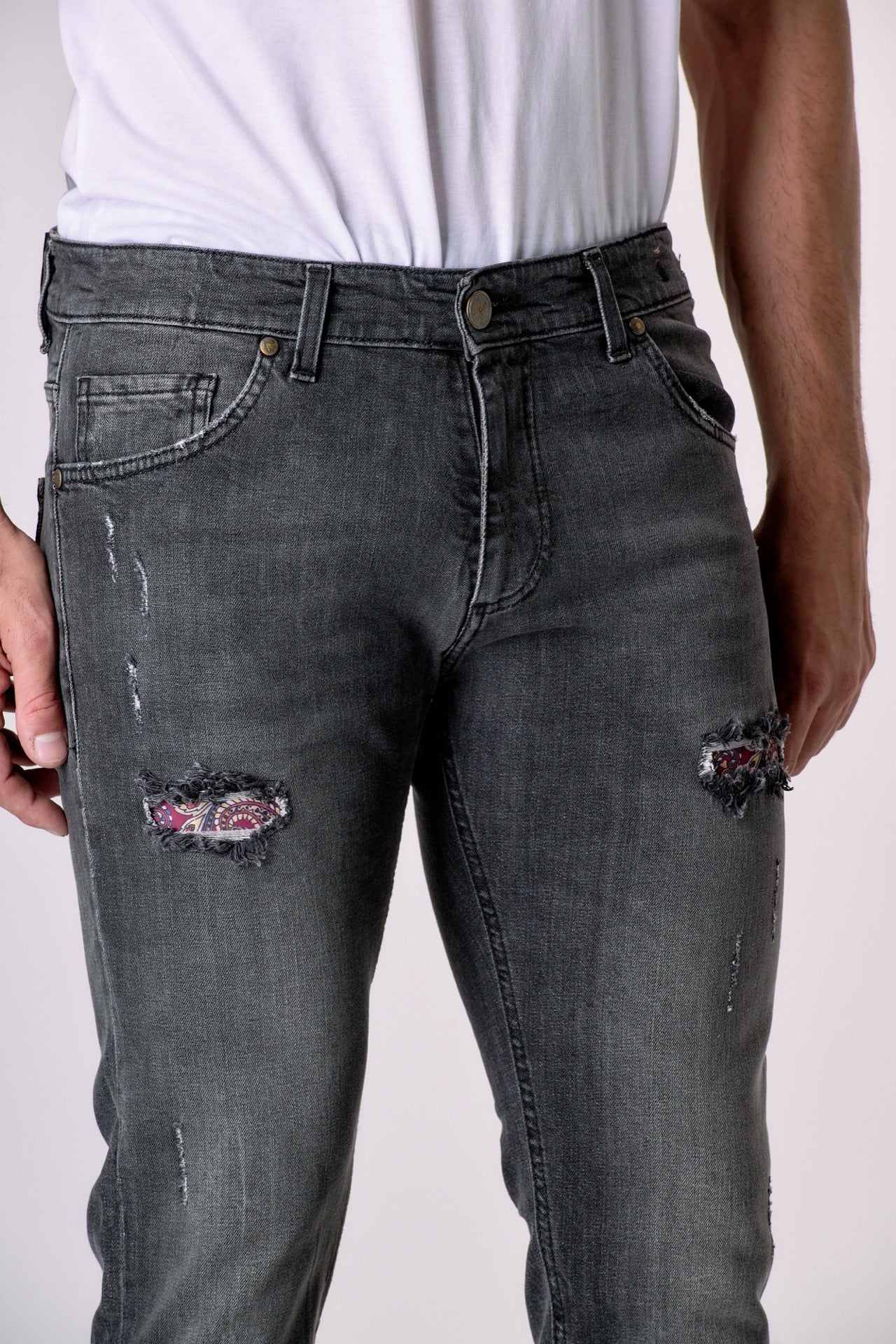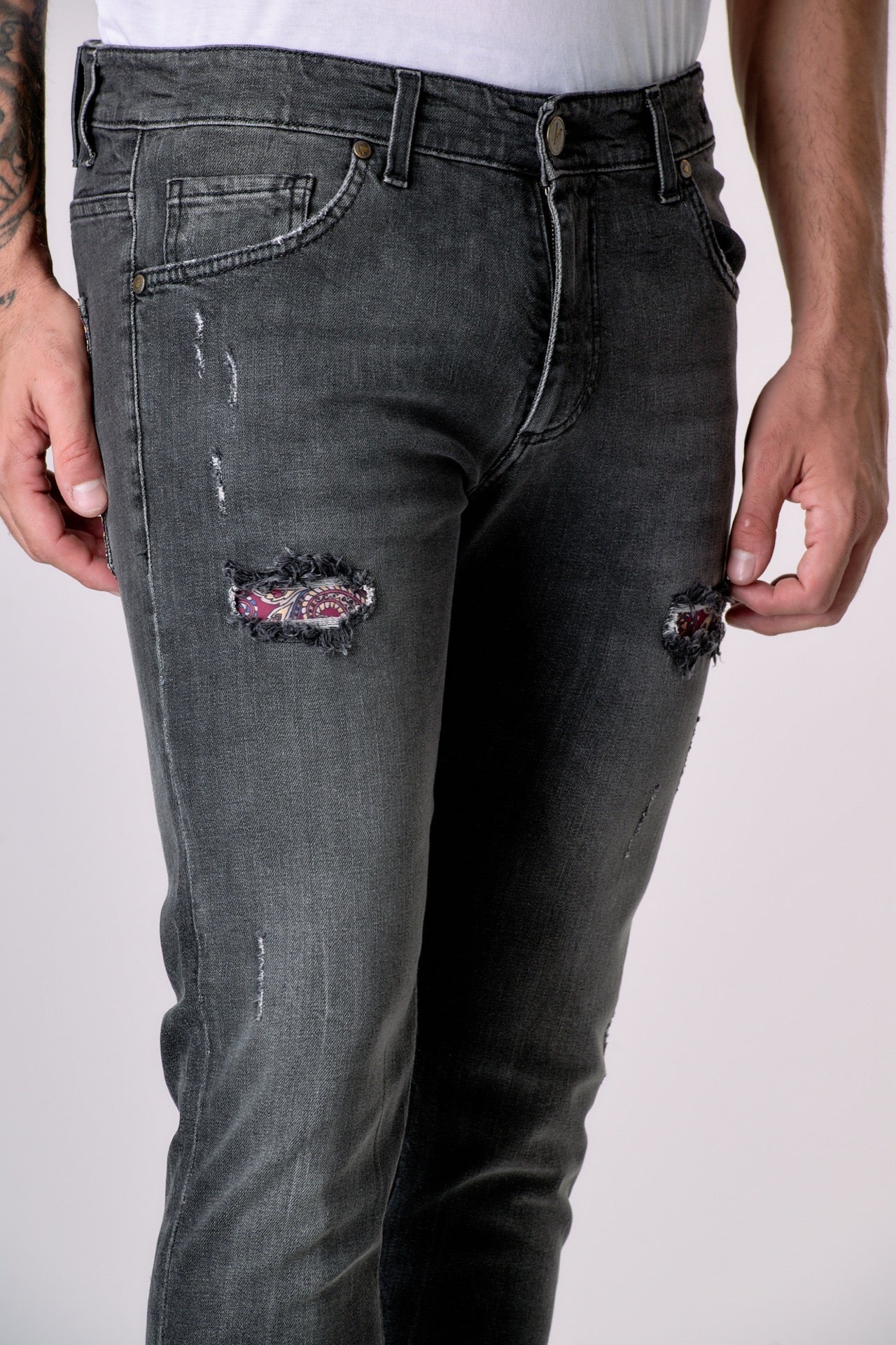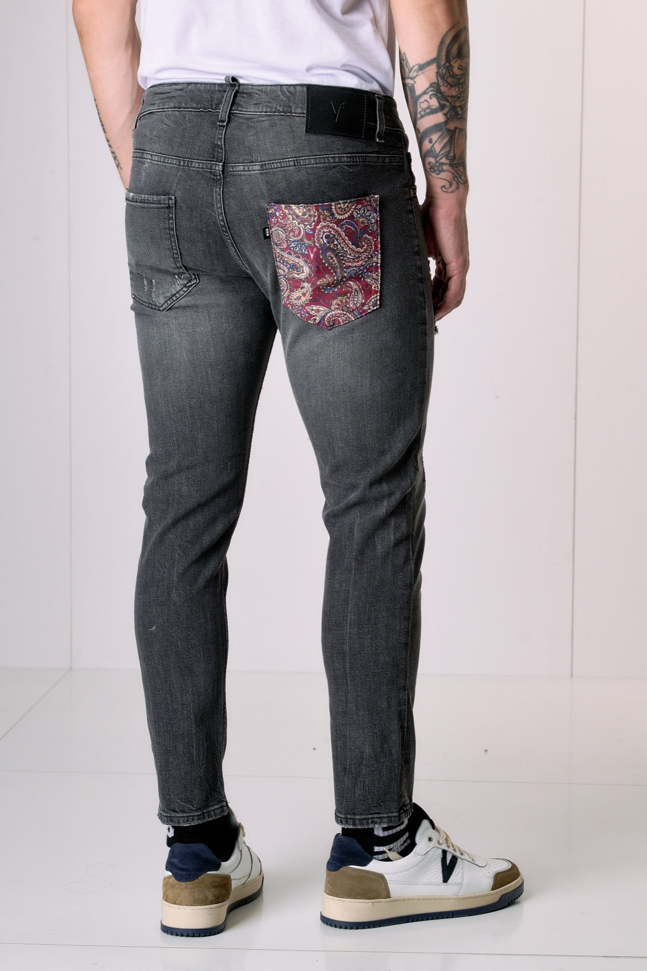 LONDON - Slim Fit Jeans - Charcoal with double front patch and V2 fabric pocket