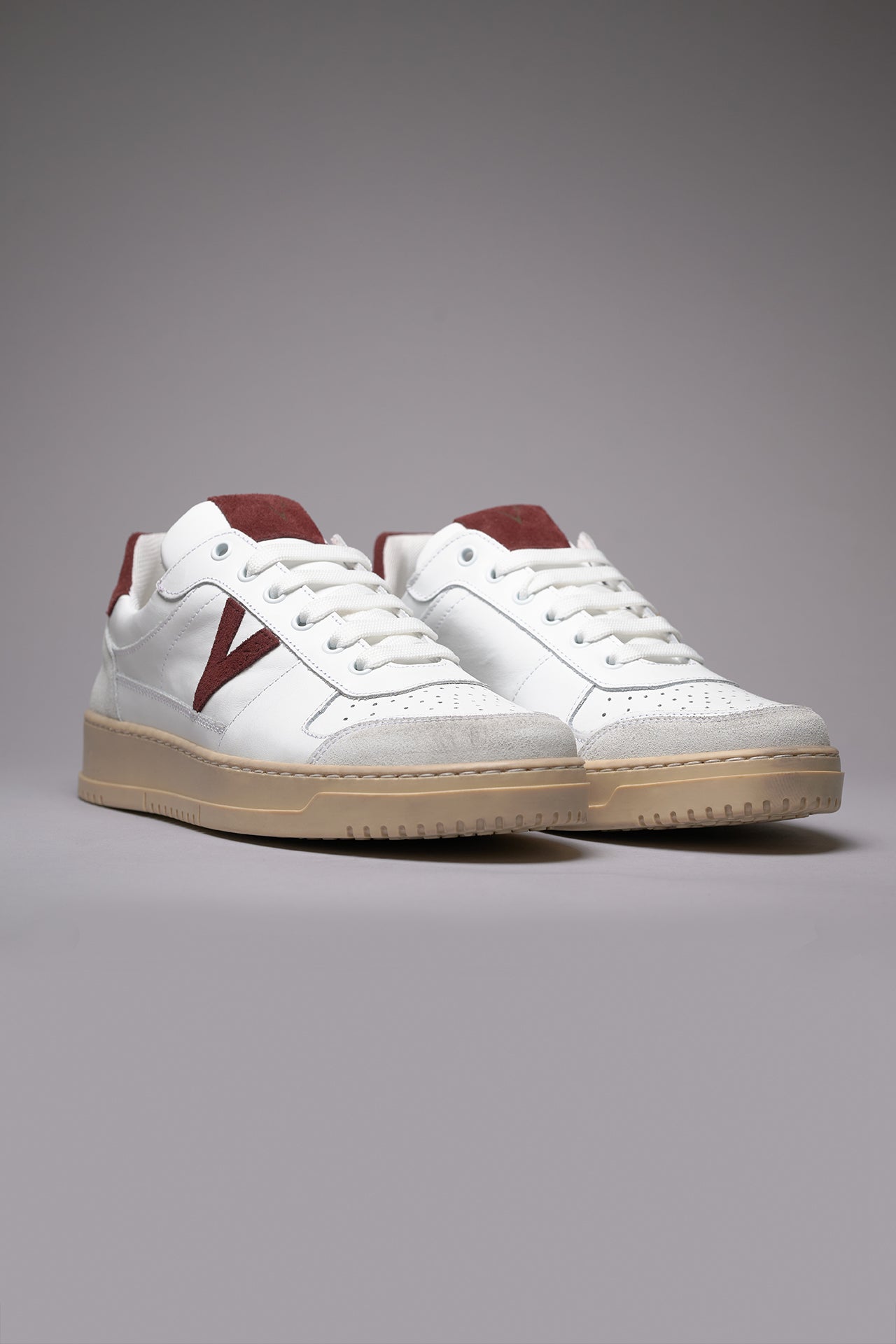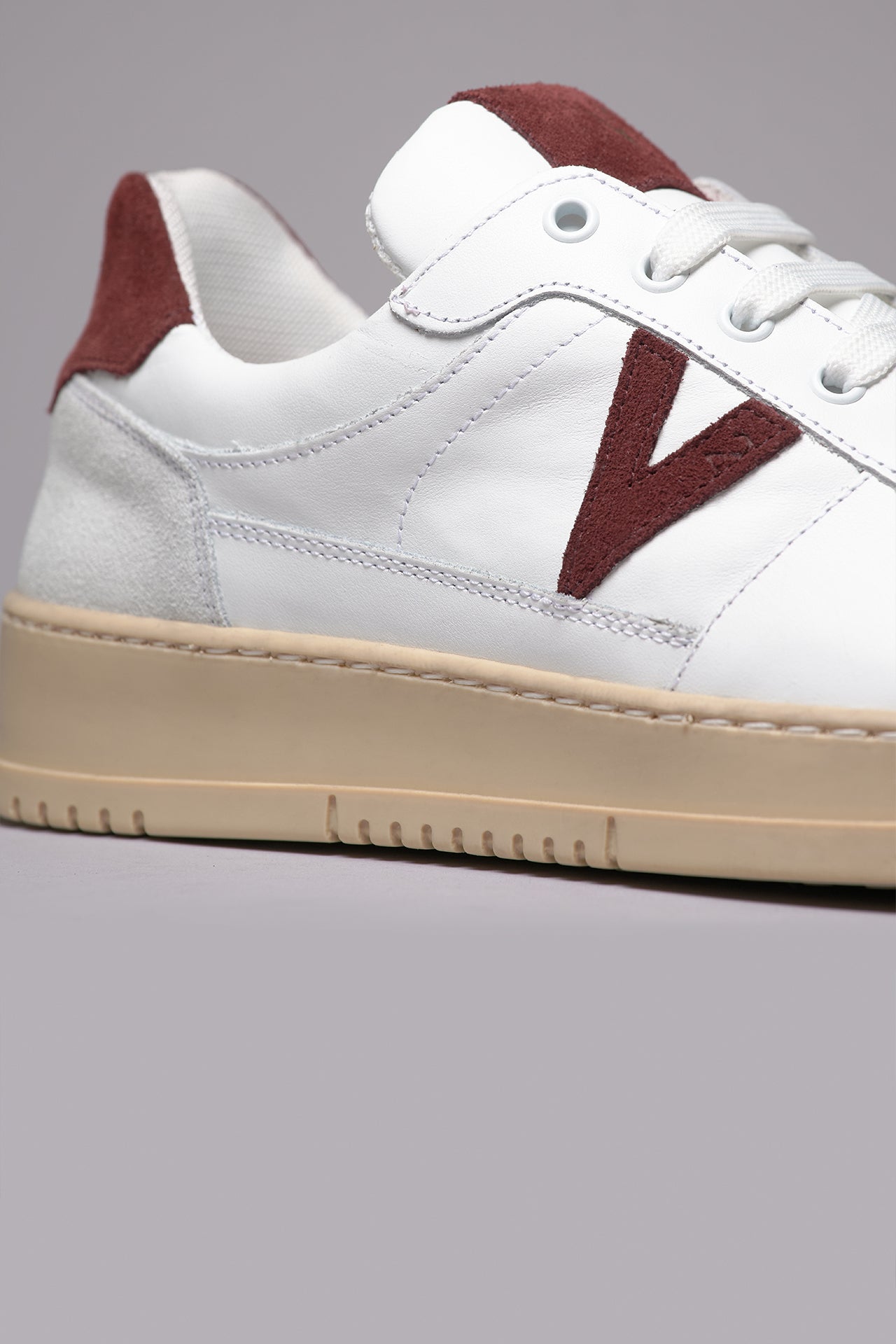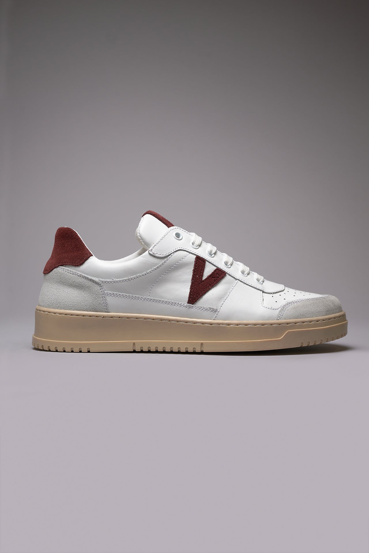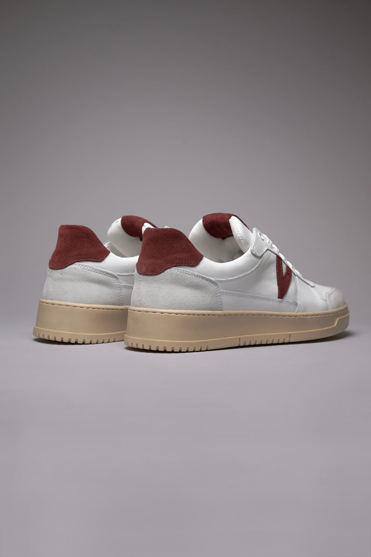 COLLEGE - White sneakers with Bordeaux suede back and insert