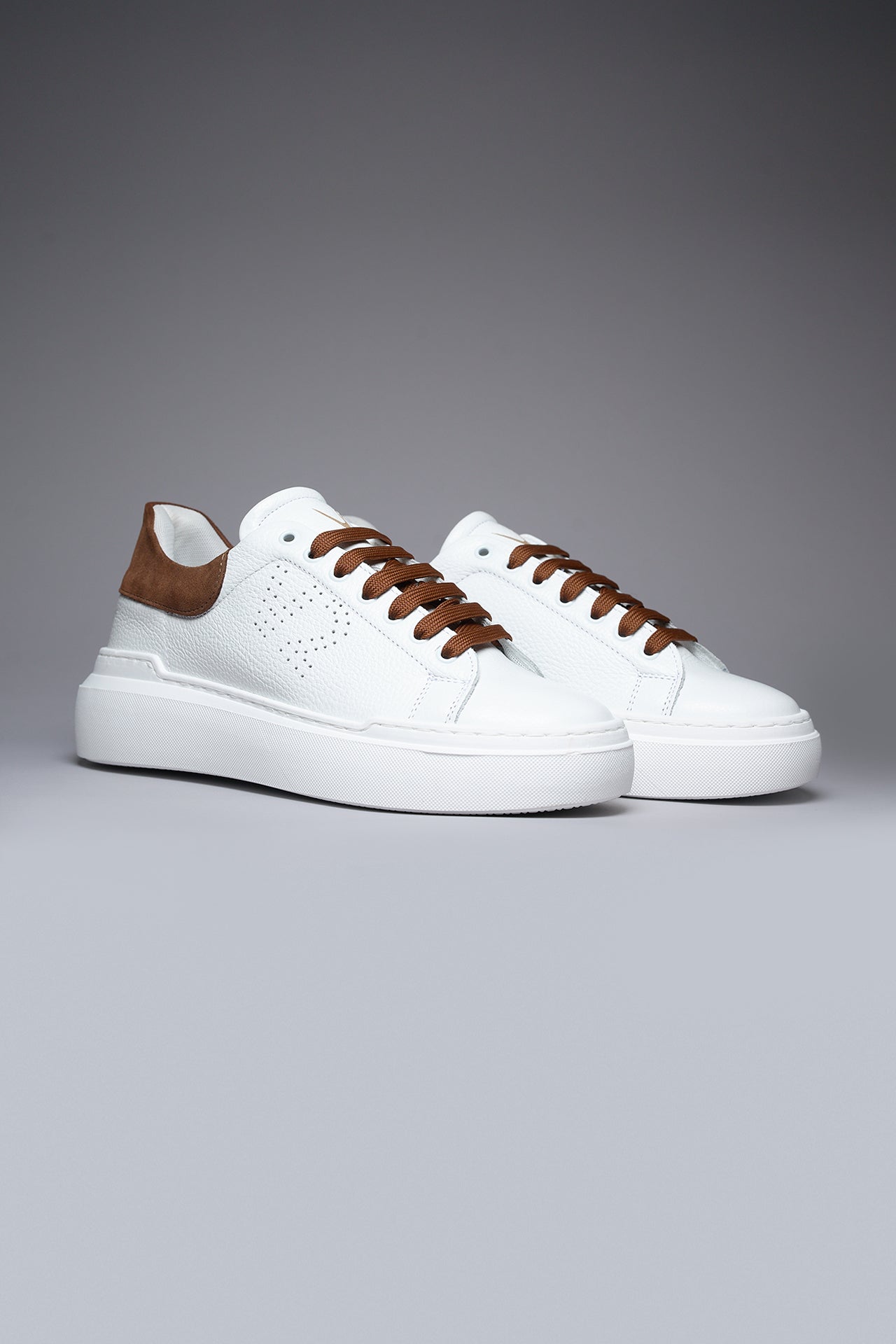 HAMMER - High-soled sneakers in hammered leather with suede back and laces, Brown