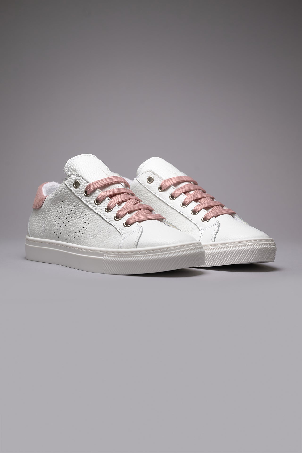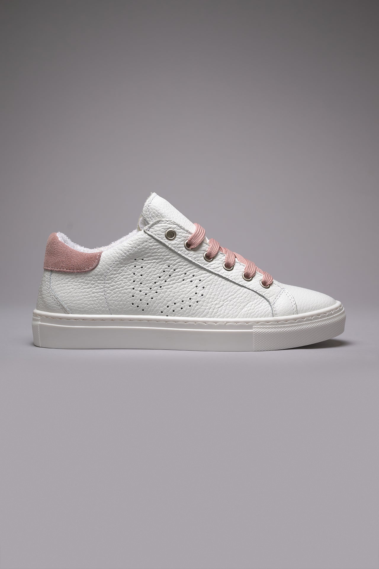 TENNIS - White low sole sneakers with Powder Pink back and laces