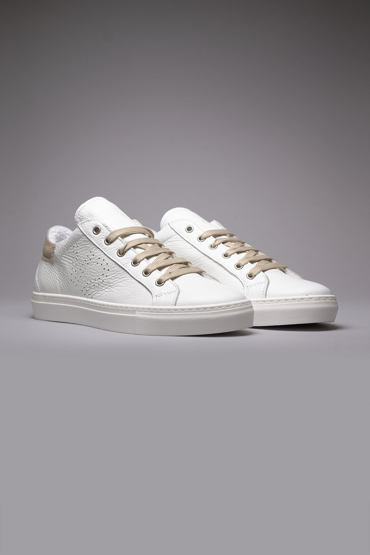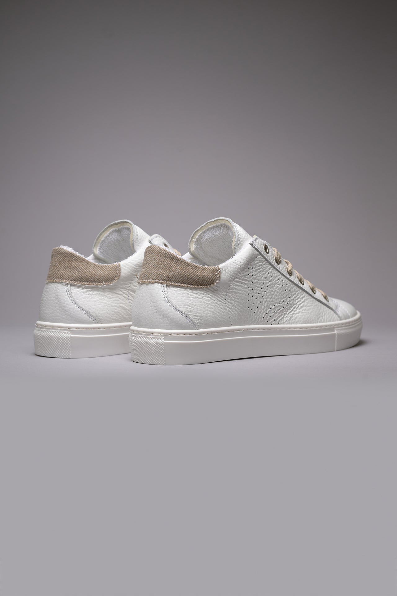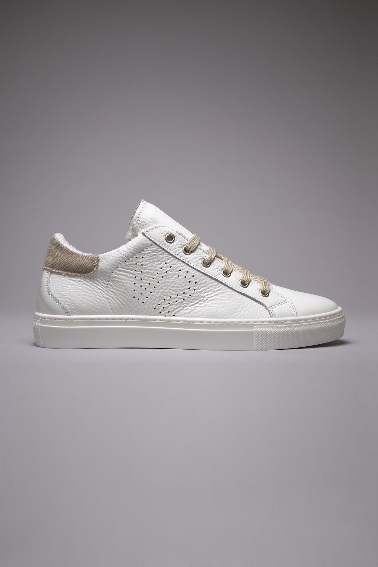 TENNIS - Low-top sneakers in white with sand herringbone fabric backing