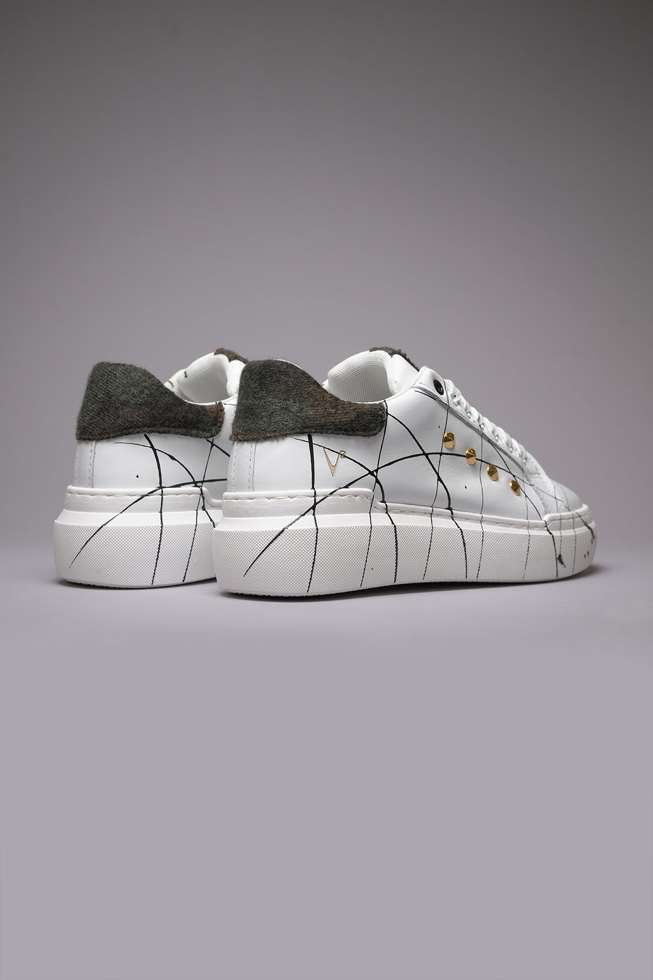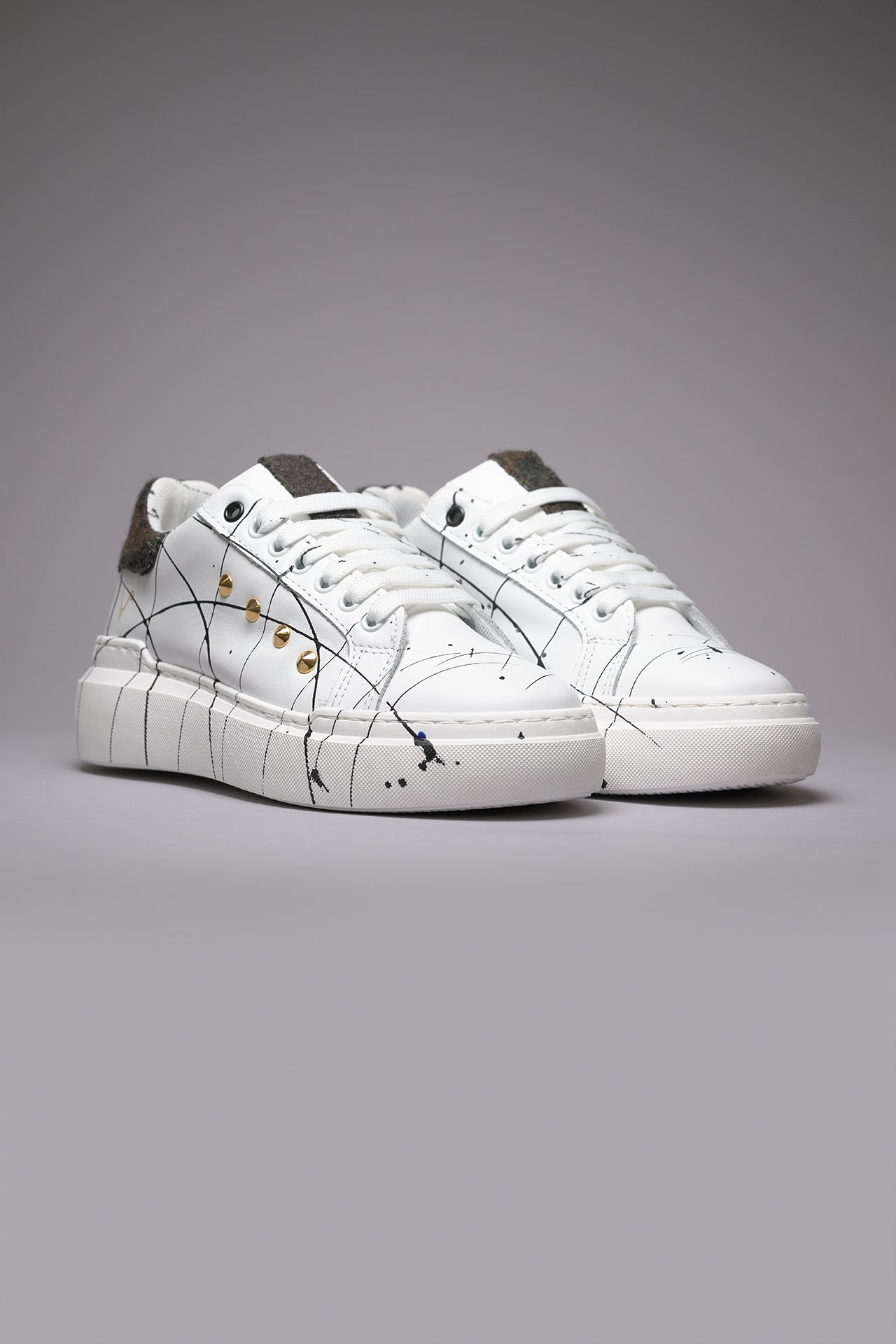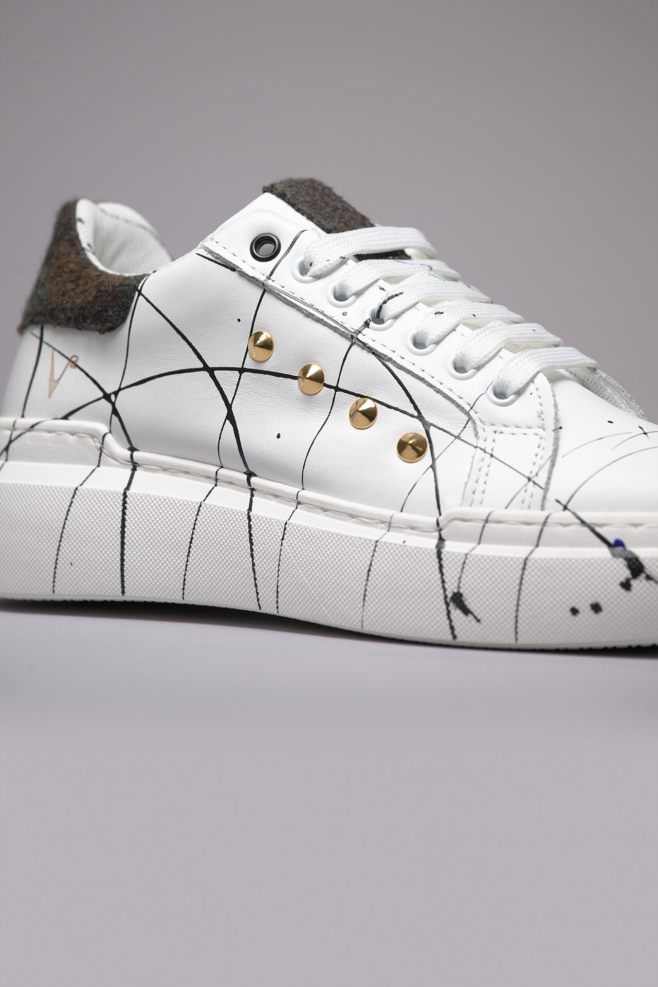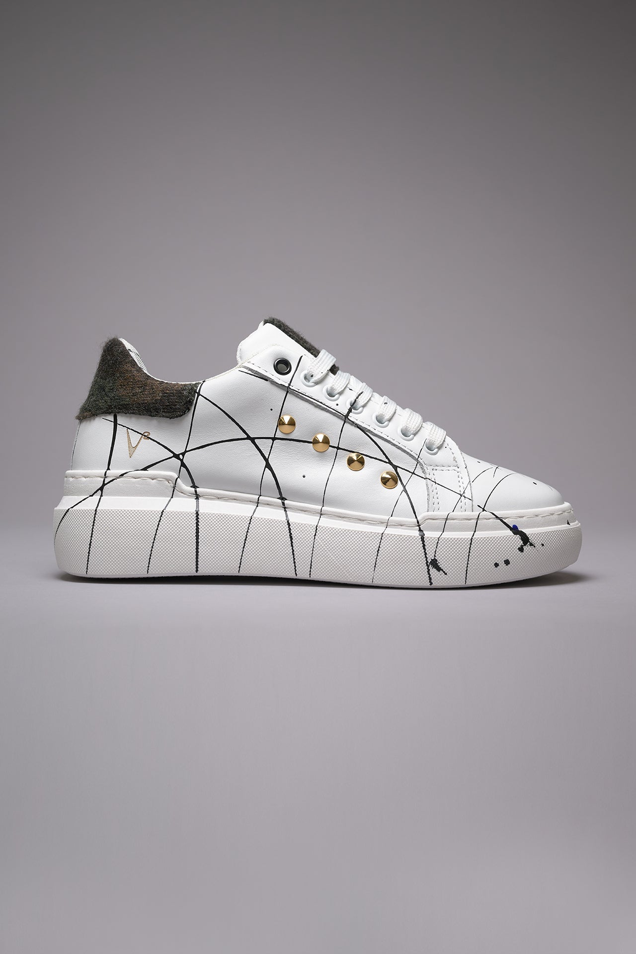 VEGA - High-top sneakers in retro camouflage with studs and paint splatter.