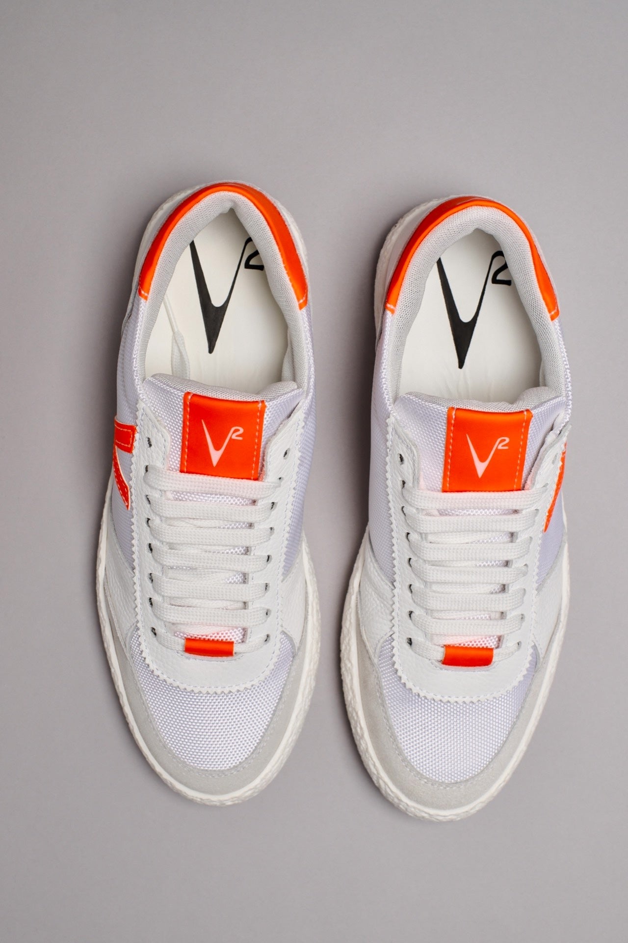 ATENA - Sneakers a suola bassa Bianca con inserti gommati Arancio Fluo