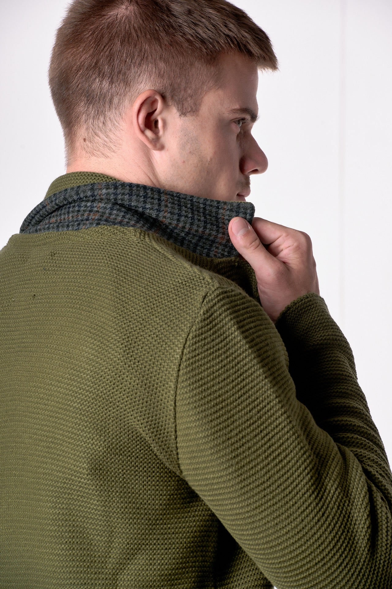 Giacca Monopetto Links Verde Militare con interno collo e pochette in tessuto V2