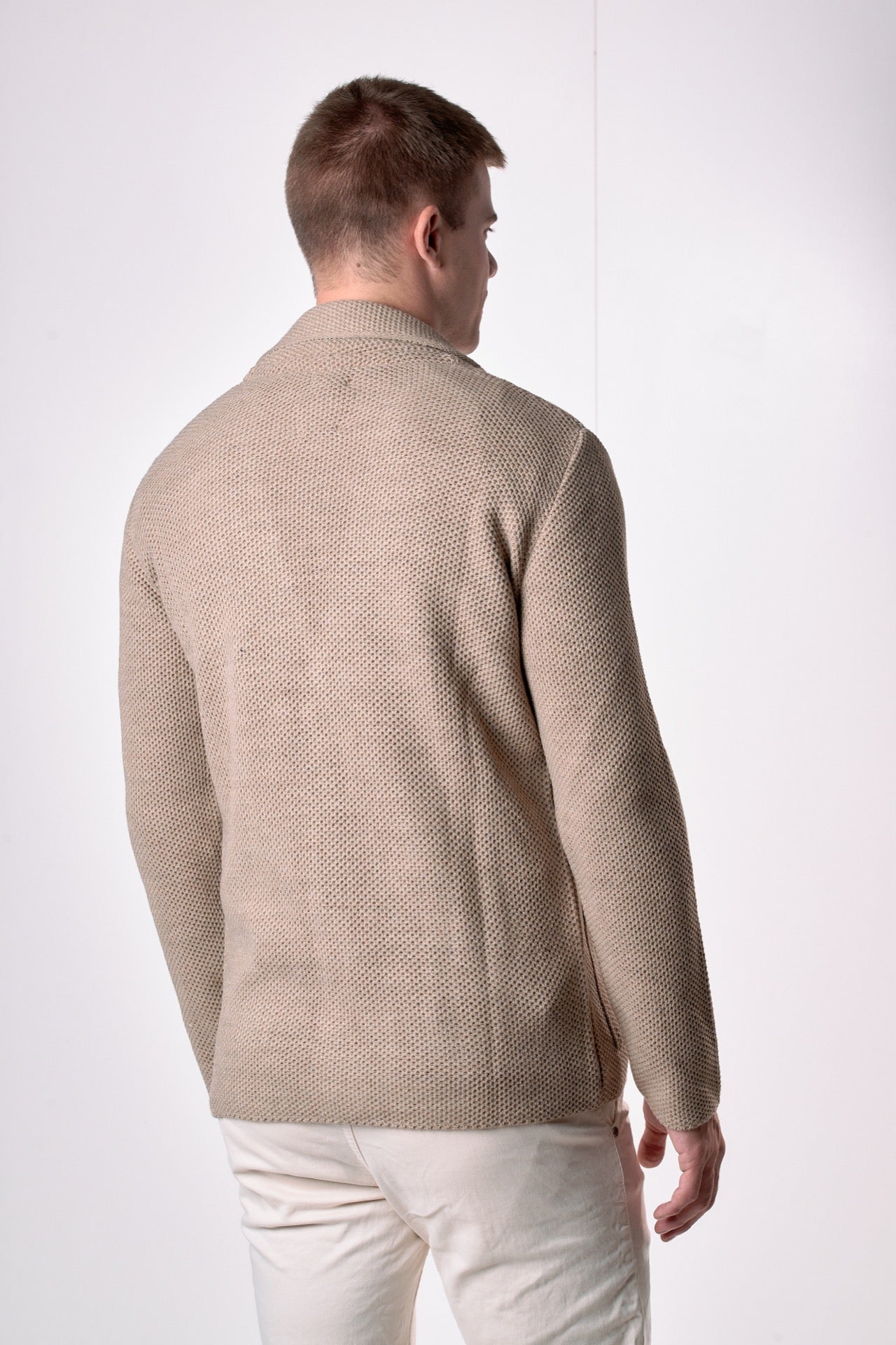 Giacca Monopetto Occhio di Pernice Tortora con pochette in tessuto V2