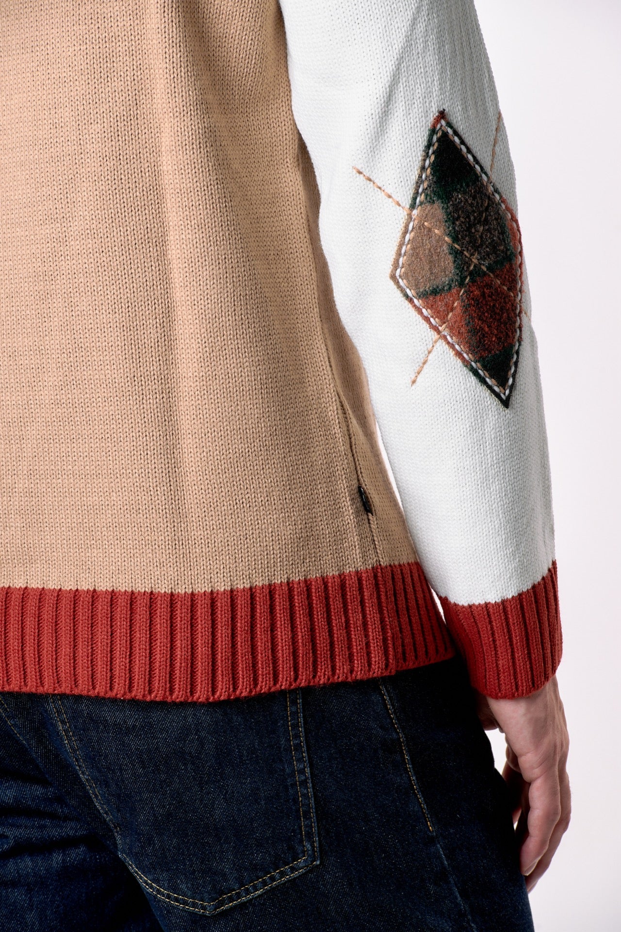 Maglione Girocollo College con V e Toppe ricamate in tessuto V2