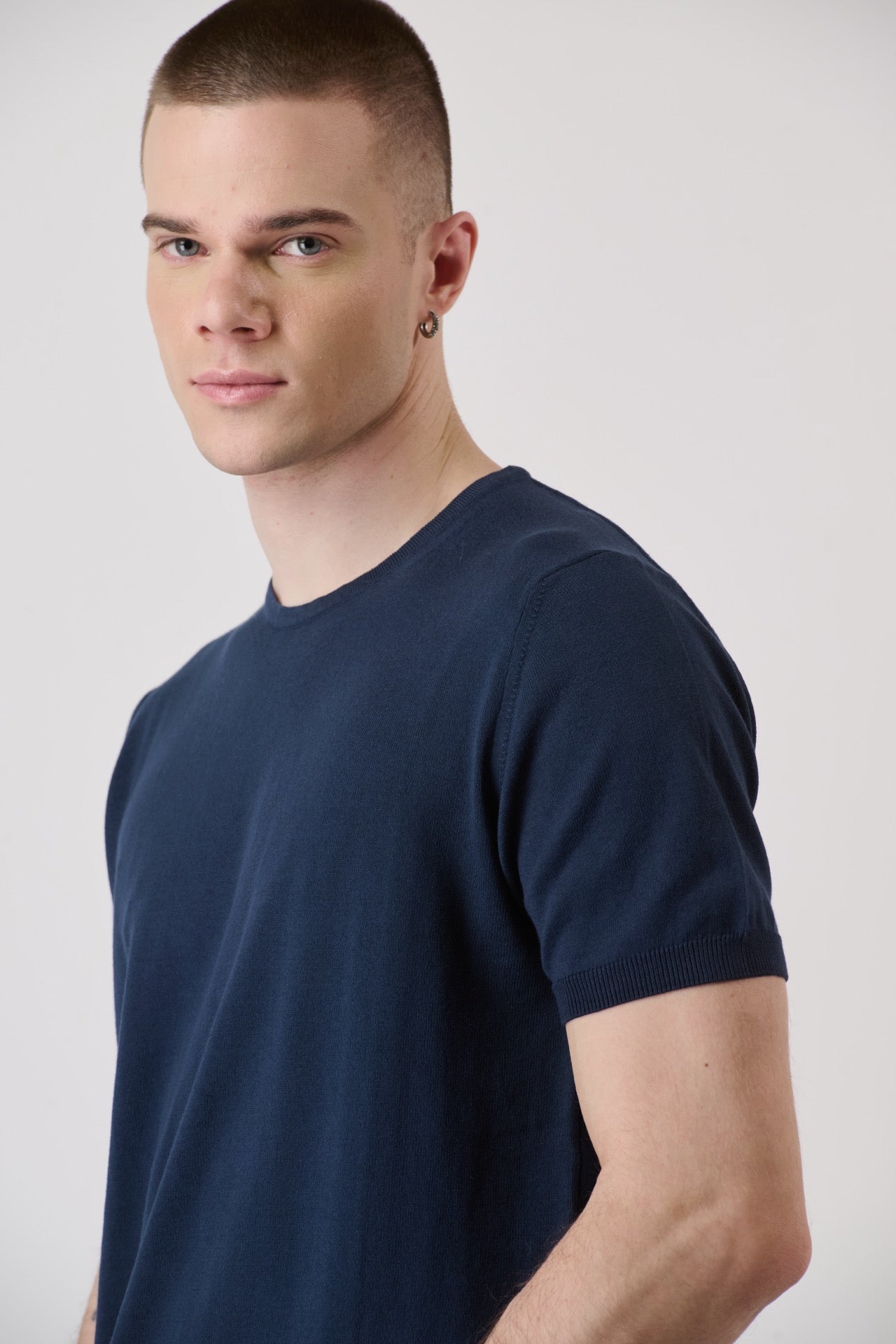 La t-shirt in maglia in puro cotone è un capo di alta qualità. Il cotone offre comfort e traspirabilità, per un capo elegante e versatile, dalla texture audace.